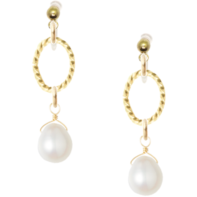 デザインCカン×淡水パール白クレオパトラ(ノンホールピアス/No2)