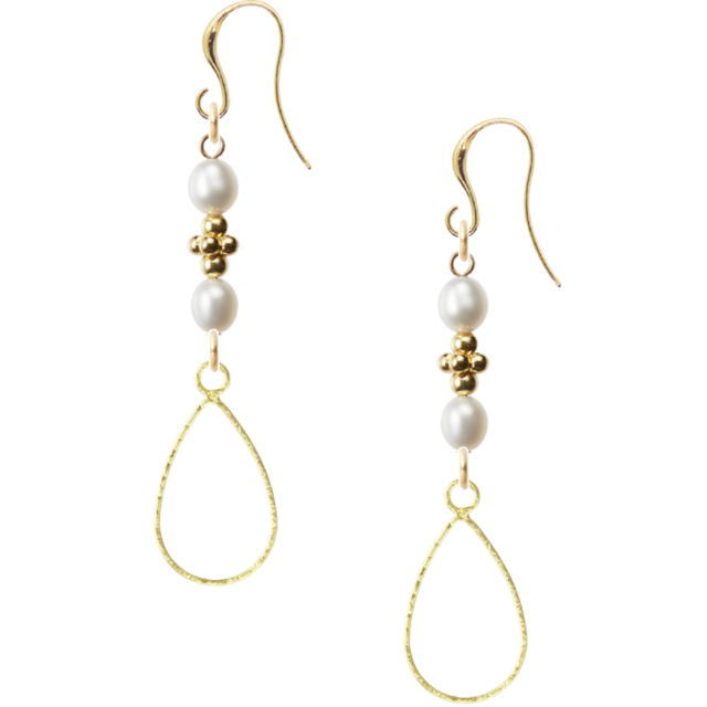 淡水パール ライス白×しずくフープ(ピアス/No21)