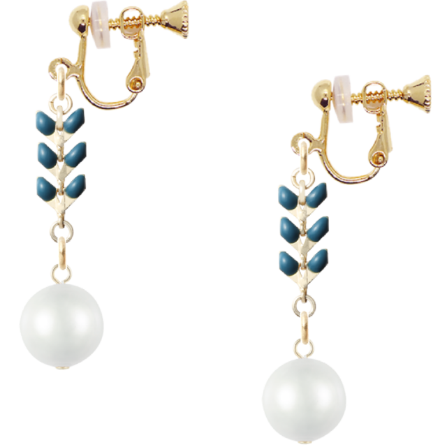 リーフチェーン ブルー×樹脂パール ホワイト(イヤリング/No35)