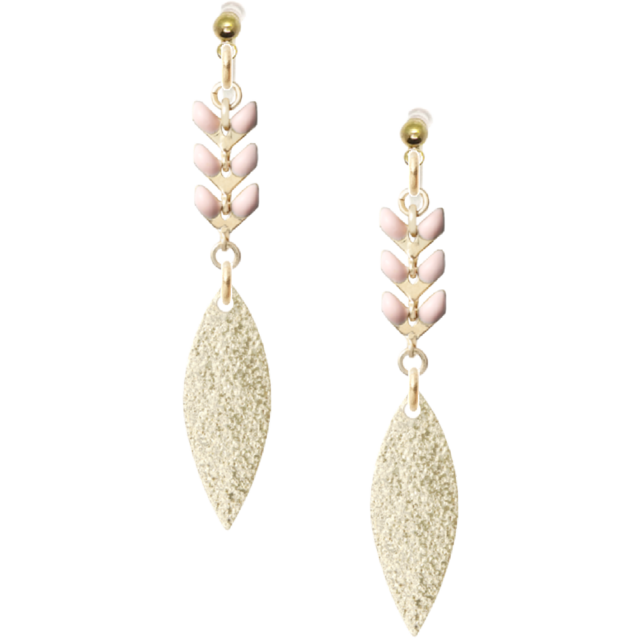 リーフチェーン ピンク×メタルパーツ(ノンホールピアス/No48)