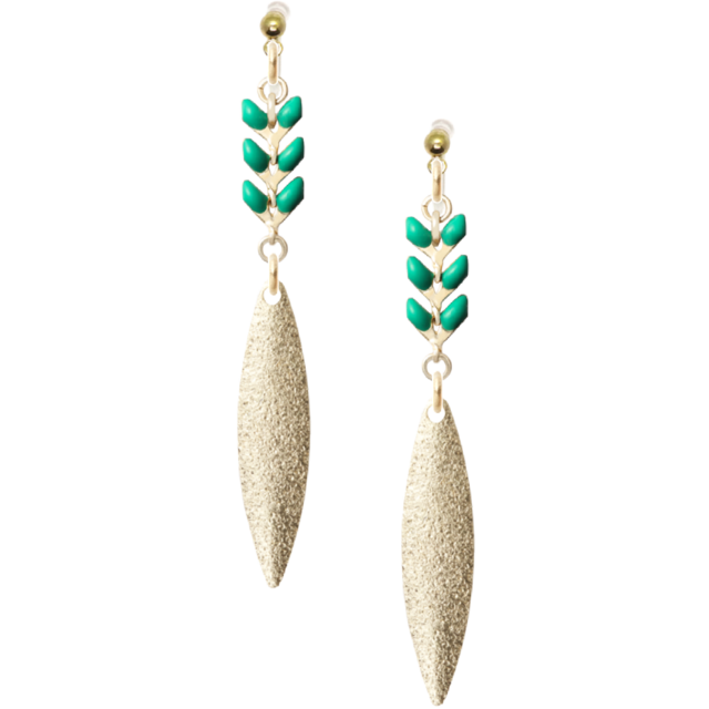 リーフチェーン グリーン×メタルパーツ シャープ(ノンホールピアス/No52)