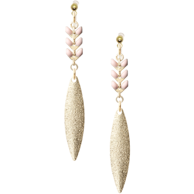 リーフチェーン ピンク×メタルパーツ シャープ(ノンホールピアス/No53)