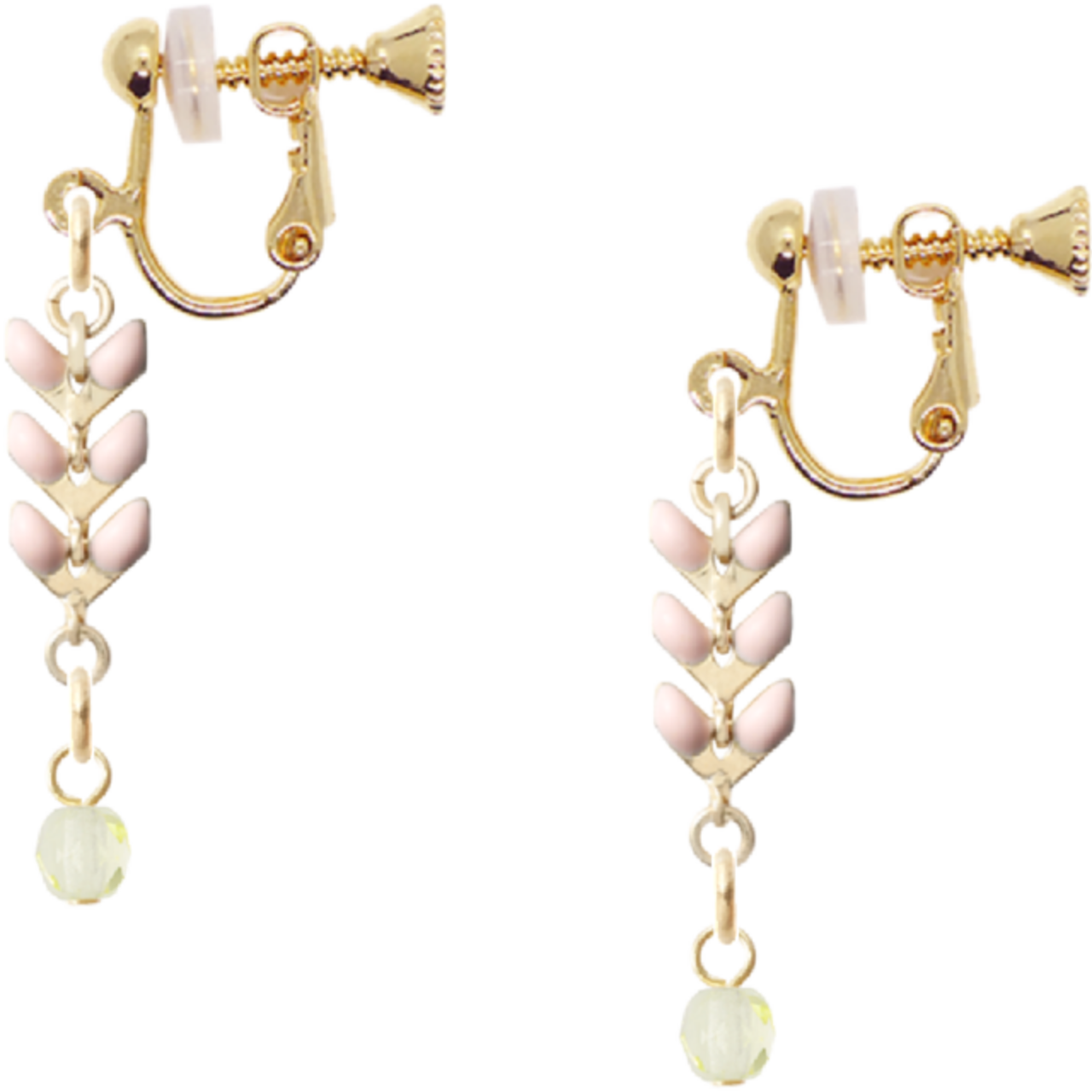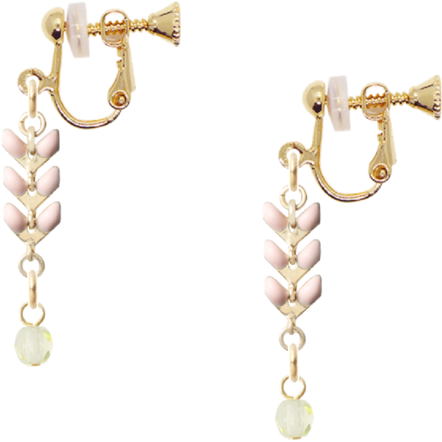 リーフチェーン ピンク×チェコビーズ ジョンキル(イヤリング/No58)