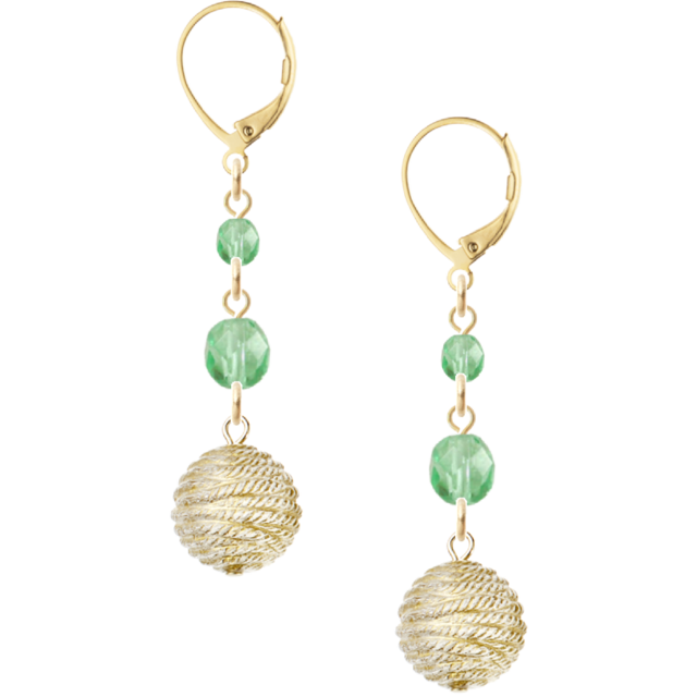 チェコビーズ ペリドット×ロープボール(ピアス/No307)