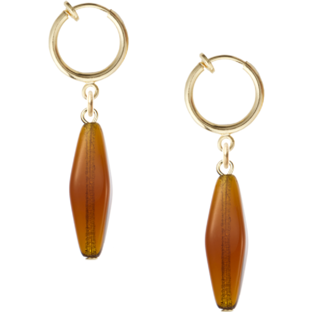 スタイリッシュなロングピコノチェコビーズを使用したイヤリングです。落ち着いたブラウンカラーが耳元をシックに引き立ててくれます。日常使いにぴったりなデザインです。