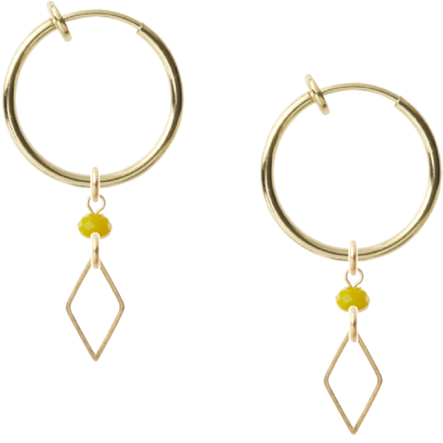 ガラスビーズイエロー×ひし形リング(イヤリング/No637)