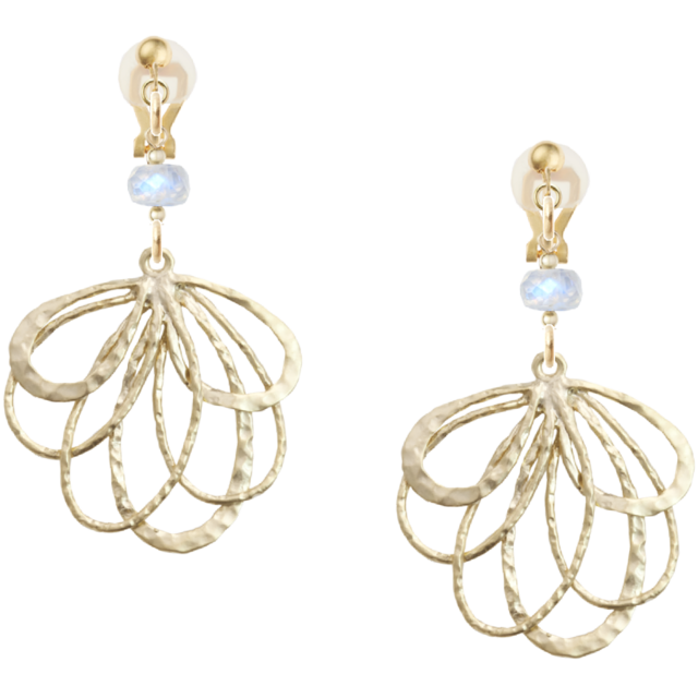 ブルームーンストーンと、存在感のあるフープモチーフを組み合わせたイヤリングです。